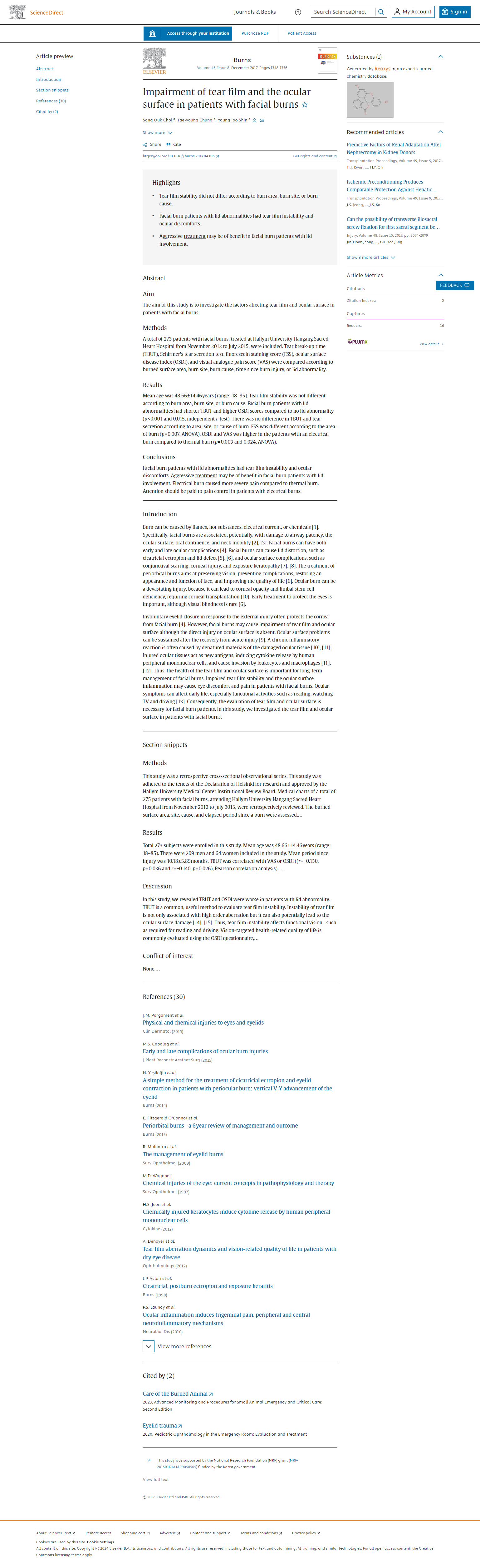 Impairment of tear film and the ocular surface in patients with facial burns