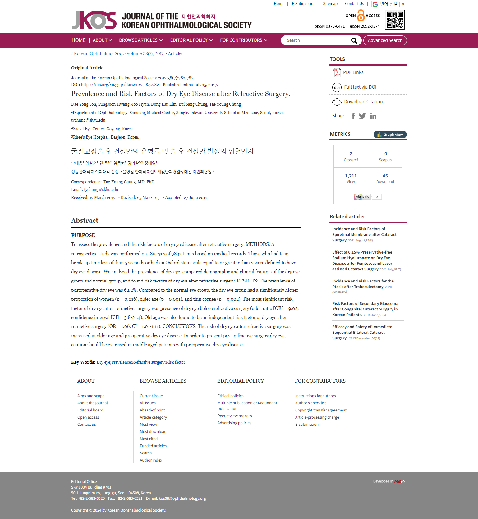 굴절교정술 후 건성안의 유병률 및 술 후 건성안 발생의 위험인자